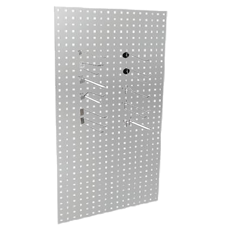 Chapas perforadas de todos los tamaños para sujeción de ganchos simples, dobles, y otro tipo de accesorios.